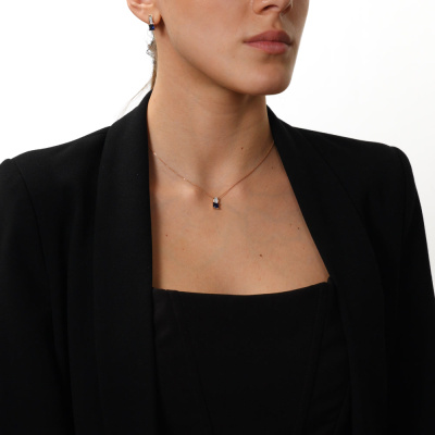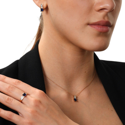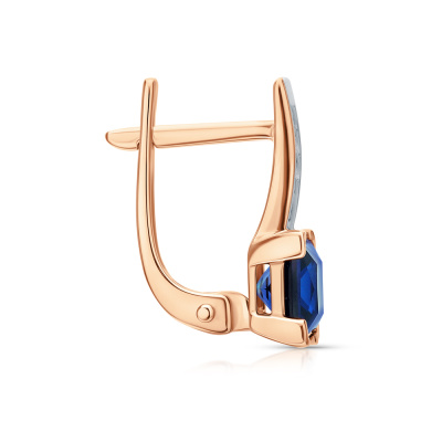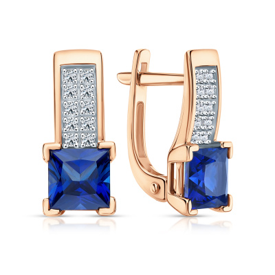 Серьги с 20 бриллиантами природными, 0.09 карат, огранка круг 17 граней, цвет 2, чистота 2; 2 сапфирами синтетическими, 1.51 карат; Розовое золото 585 пробы.