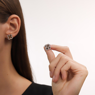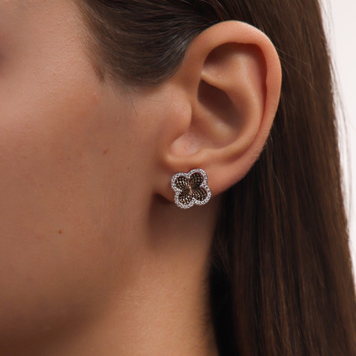 Серьги с 72 бриллиантами природными, 0.27 карат, огранка круг 17 граней, цвет 2, чистота 2; Розовое золото 585 пробы.
