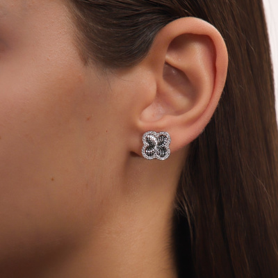 Серьги с 72 бриллиантами природными, 0.27 карат, огранка круг 17 граней, цвет 2, чистота 2; Белое золото 585 пробы.