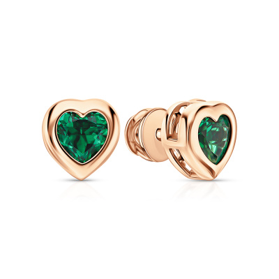 Серьги с 2 гидротермальными изумрудами, 1.39 карат; Розовое золото 585 пробы.
