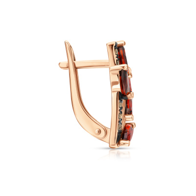 Серьги с 10 гранатами природными, 1.87 карат; 10 бриллиантами коньячными природными, 0.07 карат, огранка круг 57 граней, цвет 7, чистота 6, тип огранки А; Розовое золото 585 пробы.