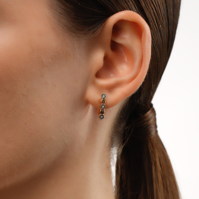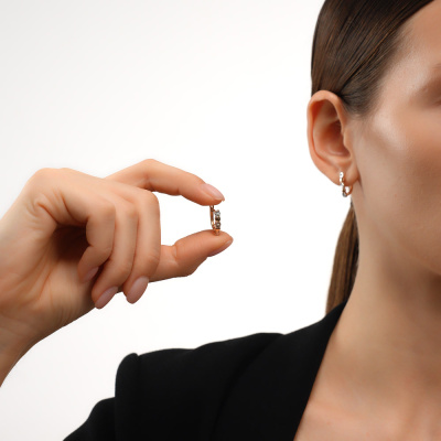 Серьги с 6 бриллиантами природными, 0.04 карат, огранка круг 57 граней, цвет 3, чистота 6, тип огранки А; Розовое и белое золото 585 пробы.