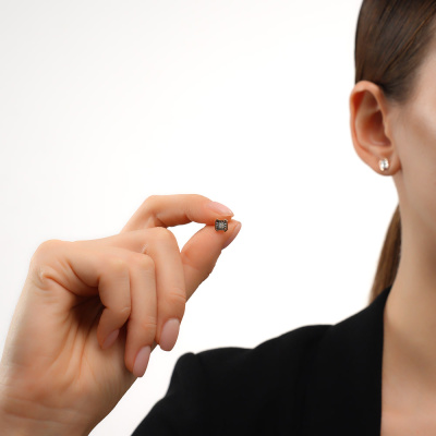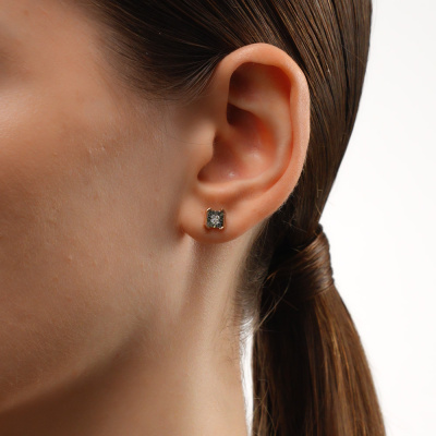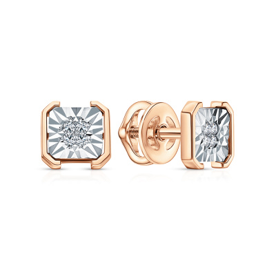 Серьги с 8 бриллиантами природными, 0.05 карат, огранка круг 57 граней, цвет 3, чистота 6, тип огранки А; Розовое и белое золото 585 пробы.