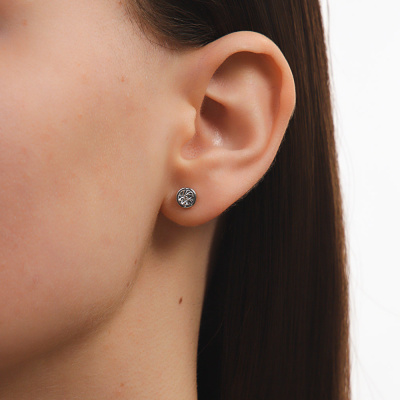 Серьги с 2 бриллиантами природными, 0.009 карат, огранка круг 17 граней, цвет 3, чистота 3, тип огранки Б; Серебро 925 пробы.