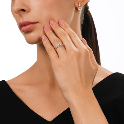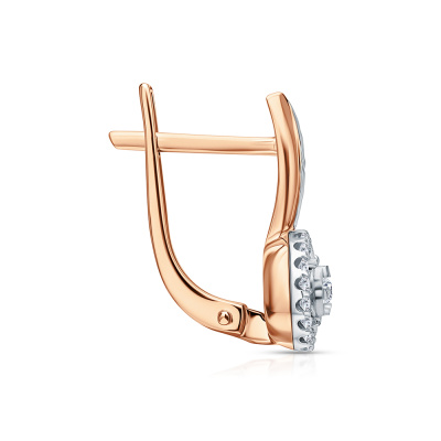 Серьги с 2 бриллиантами природными, 0.03 карат, огранка круг 57 граней, цвет 3, чистота 6, тип огранки А; 36 бриллиантами природными, 0.11 карат, огранка круг 17 граней, цвет 2, чистота 3, тип огранки А; Розовое и белое золото 585 пробы.