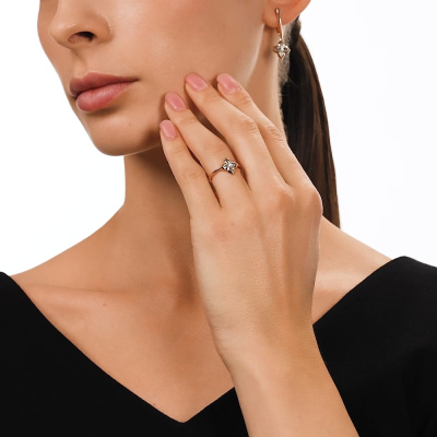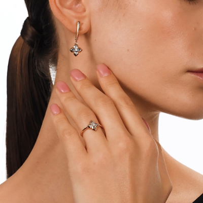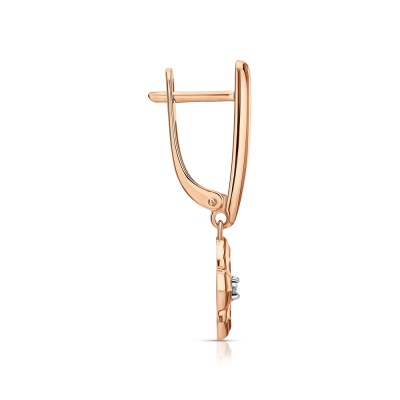 Серьги с 2 бриллиантами природными, 0.02 карат, огранка круг 57 граней, цвет 3, чистота 6, тип огранки А; Розовое и белое золото 585 пробы.