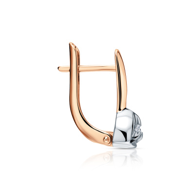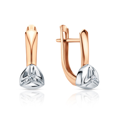 Серьги с 2 бриллиантами природными, 0.04 карат, огранка круг 57 граней, цвет 3, чистота 6, тип огранки А; Розовое золото 585 пробы.