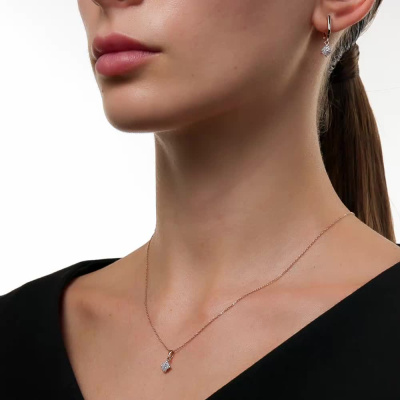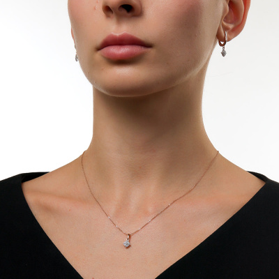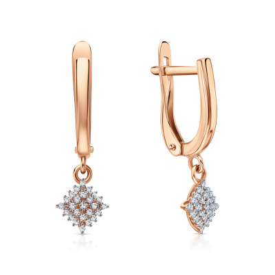 Серьги с 50 бриллиантами природными, 0.13 карат, огранка круг 17 граней, цвет 2, чистота 2, тип огранки А; Розовое золото 585 пробы.