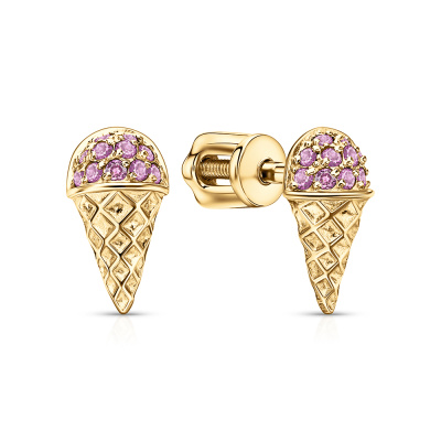 Серьги с 22 сапфирами розовыми природными, 0.16 карат; Желтое золото 585 пробы.