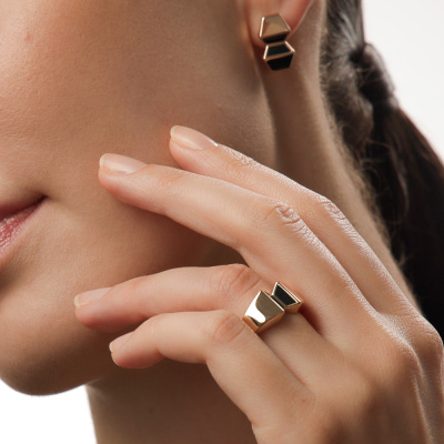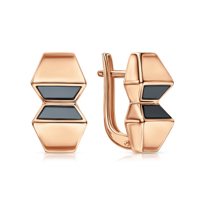 Серьги с 4 ониксами черными природными; Розовое золото 585 пробы.