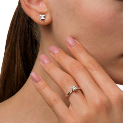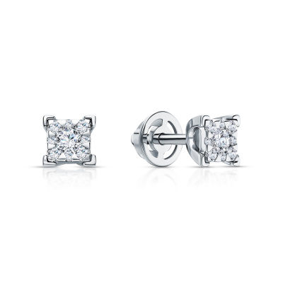 Серьги с 2 бриллиантами природными, 0.12 карат, огранка круг 57 граней, цвет 3, чистота 6, тип огранки А; 8 бриллиантами природными, 0.11 карат, огранка круг 57 граней, цвет 3, чистота 6, тип огранки А; 8 бриллиантами природными, 0.03 карат, огранка круг 57 граней, цвет 3, чистота 6, тип огранки А; Белое золото 585 пробы.