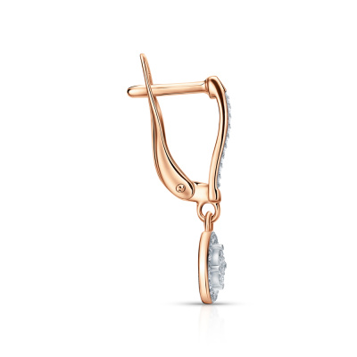 Серьги с 72 бриллиантами природными, 0.18 карат, огранка круг 17 граней, цвет 2, чистота 2, тип огранки А; Розовое золото 585 пробы.