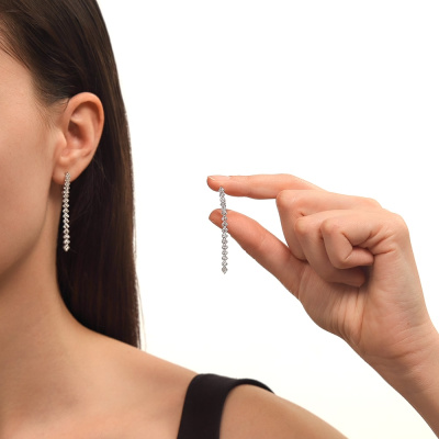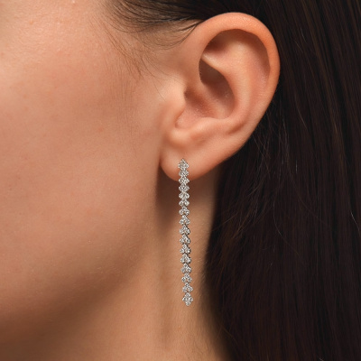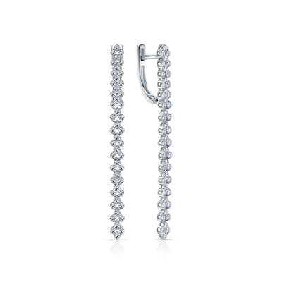 Серьги с 98 бриллиантами выращенными, 1.2 карат, огранка круг 57 граней, цвет 3, чистота 5, тип огранки А; Белое золото 585 пробы.