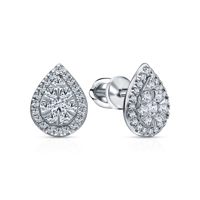 Серьги с 2 бриллиантами природными, 0.08 карат, огранка круг 57 граней, цвет 3, чистота 6, тип огранки А; 4 бриллиантами природными, 0.08 карат, огранка круг 57 граней, цвет 3, чистота 6, тип огранки А; 8 бриллиантами природными, 0.1 карат, огранка круг 57 граней, цвет 3, чистота 6, тип огранки А; 2 бриллиантами природными, 0.01 карат, огранка круг 57 граней, цвет 3, чистота 6, тип огранки А; 40 бриллиантами природными, 0.14 карат, огранка круг 57 граней, цвет 2, чистота 2, тип огранки А; Белое золото 585 пробы.
