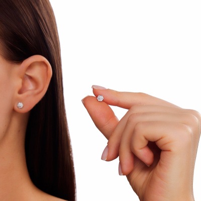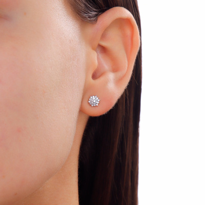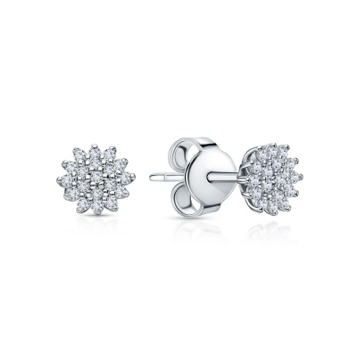 Серьги с 38 бриллиантами выращенными, 0.2 карат, огранка круг 57 граней, цвет 2, чистота 5; Серебро 925 пробы.