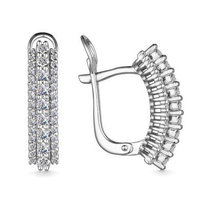 Серьги с 18 бриллиантами природными, 0.45 карат, огранка круг 57 граней, цвет 3, чистота 6, тип огранки А; 60 бриллиантами природными, 0.33 карат, огранка круг 57 граней, цвет 3, чистота 6, тип огранки А; Белое золото 585 пробы.