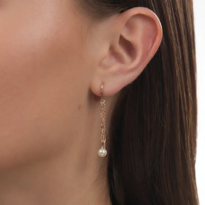 Серьги с 2 жемчугами пресноводными культ.белыми, 2.03 карат; Розовое золото 585 пробы.