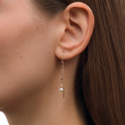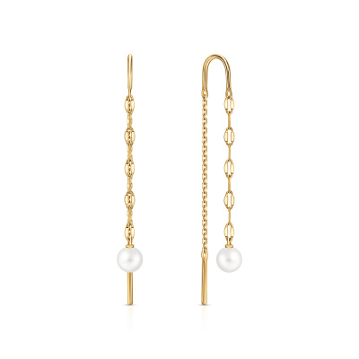Серьги с 2 жемчугами пресноводными культ.белыми, 2.06 карат; Желтое золото 585 пробы.