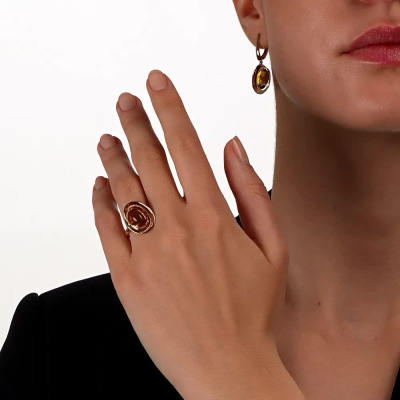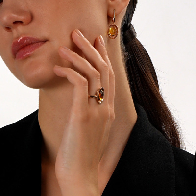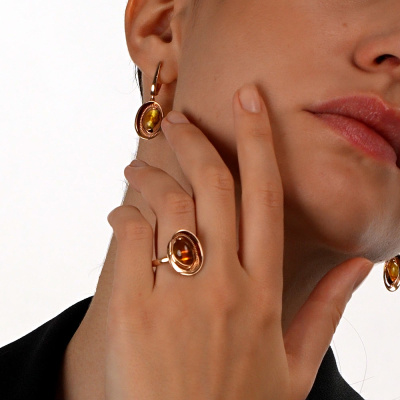 Серьги с 2 янтарями желтыми природными, 1.61 карат; Розовое золото 585 пробы.