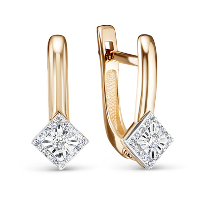Серьги с 2 бриллиантами природными, 0.04 карат, огранка круг 57 граней, цвет 3, чистота 6, тип огранки А; 32 бриллиантами природными, 0.05 карат, огранка круг 17 граней, цвет 2, чистота 3, тип огранки А; Розовое золото 585 пробы.