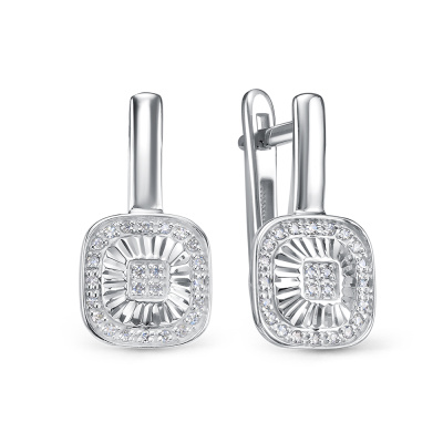 Серьги с 48 бриллиантами природными, 0.08 карат, огранка круг 17 граней, цвет 2, чистота 3, тип огранки А; Белое золото 585 пробы.