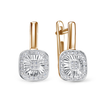 Серьги с 48 бриллиантами природными, 0.08 карат, огранка круг 17 граней, цвет 2, чистота 3, тип огранки А; Розовое золото 585 пробы.