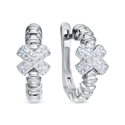Серьги с 36 бриллиантами природными, 0.26 карат, огранка круг 57 граней, цвет 3, чистота 6, тип огранки А; 4 бриллиантами природными, 0.01 карат, огранка круг 17 граней, цвет 2, чистота 3, тип огранки А; Белое золото 585 пробы.