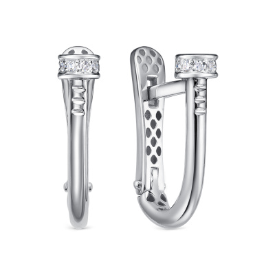Серьги с 12 бриллиантами природными, 0.04 карат, огранка круг 17 граней, цвет 2, чистота 3, тип огранки А; Белое золото 585 пробы.