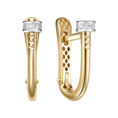 Серьги с 12 бриллиантами природными, 0.04 карат, огранка круг 17 граней, цвет 2, чистота 3, тип огранки А; Желтое золото 585 пробы.