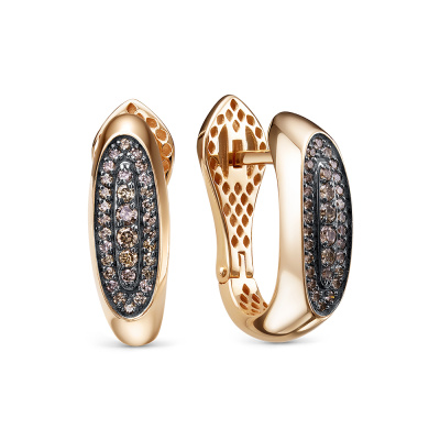 Серьги с 4 бриллиантами природными, 0.08 карат, огранка круг 57 граней, цвет 7, чистота 5, тип огранки А; 4 бриллиантами природными, 0.05 карат, огранка круг 57 граней, цвет 7, чистота 5; 4 бриллиантами природными, 0.03 карат, огранка круг 57 граней, цвет 7, чистота 5, тип огранки А; 52 бриллиантами природными, 0.18 карат, огранка круг 57 граней, цвет 7, чистота 5, тип огранки А; Розовое золото 585 пробы.