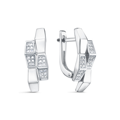 Серьги с 48 бриллиантами природными, 0.14 карат, огранка круг 17 граней, цвет 2, чистота 3, тип огранки А; Белое золото 585 пробы.