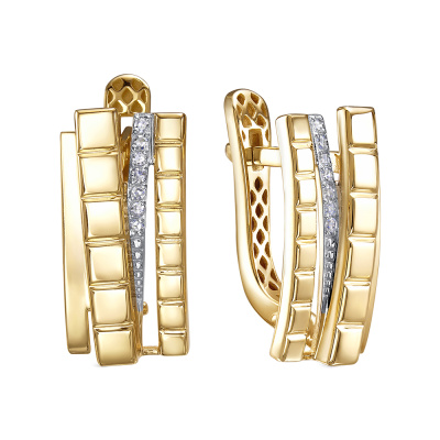Серьги с 14 бриллиантами природными, 0.05 карат, огранка круг 17 граней, цвет 2, чистота 3, тип огранки А; Желтое золото 585 пробы.