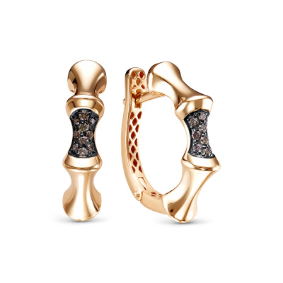 Серьги с 20 бриллиантами природными, 0.15 карат, огранка круг 57 граней, цвет 7, чистота 5, тип огранки А; Розовое золото 585 пробы.