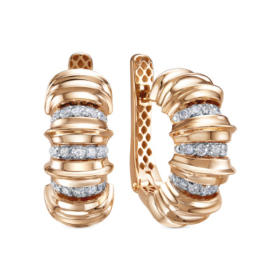 Серьги с 18 бриллиантами природными, 0.27 карат, огранка круг 57 граней, цвет 3, чистота 6, тип огранки А; 12 бриллиантами природными, 0.08 карат, огранка круг 57 граней, цвет 3, чистота 6, тип огранки А; Розовое золото 585 пробы.