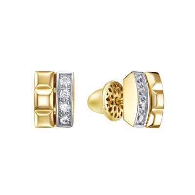 Серьги с 8 бриллиантами природными, 0.12 карат, огранка круг 57 граней, цвет 3, чистота 6, тип огранки А; Желтое золото 585 пробы.