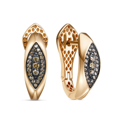 Серьги с 2 бриллиантами природными, 0.04 карат, огранка круг 57 граней, цвет 7, чистота 5, тип огранки А; 4 бриллиантами природными, 0.06 карат, огранка круг 57 граней, цвет 7, чистота 5; 40 бриллиантами природными, 0.16 карат, огранка круг 57 граней, цвет 7, чистота 5, тип огранки А; Розовое золото 585 пробы.