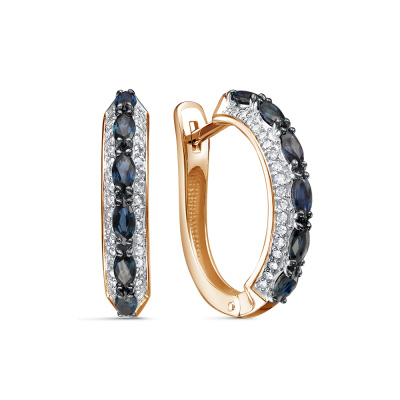 Серьги с 76 бриллиантами природными, 0.29 карат, огранка круг 17 граней, цвет 2, чистота 3, тип огранки А; 12 сапфирами природными, 1.04 карат, цвет 2, чистота 2, тип огранки Б; Розовое золото 585 пробы.