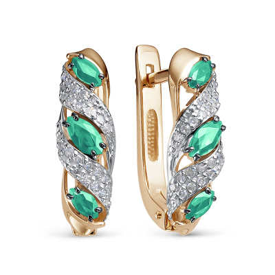 Серьги с 56 бриллиантами природными, 0.21 карат, огранка круг 17 граней, цвет 2, чистота 3, тип огранки А; 6 изумрудами природными, 0.5 карат, цвет 3, чистота 3, тип огранки Б; Розовое золото 585 пробы.