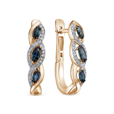 Серьги с 56 бриллиантами природными, 0.1 карат, огранка круг 17 граней, цвет 2, чистота 3, тип огранки А; 6 сапфирами природными, 0.81 карат, цвет 2, чистота 2, тип огранки Б; Розовое золото 585 пробы.