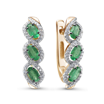 Серьги с 88 бриллиантами природными, 0.16 карат, огранка круг 17 граней, цвет 2, чистота 3, тип огранки А; 6 изумрудами природными, 1.14 карат, цвет 3, чистота 3, тип огранки Б; Розовое золото 585 пробы.