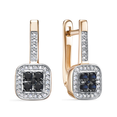 Серьги с 2 бриллиантами природными, 0.01 карат, огранка круг 57 граней, цвет 3, чистота 6, тип огранки А; 54 бриллиантами природными, 0.09 карат, огранка круг 17 граней, цвет 2, чистота 3, тип огранки А; 8 сапфирами природными, 0.32 карат, цвет 2, чистота 2, тип огранки Б; Розовое золото 585 пробы.
