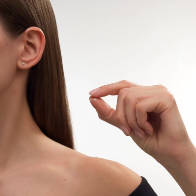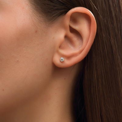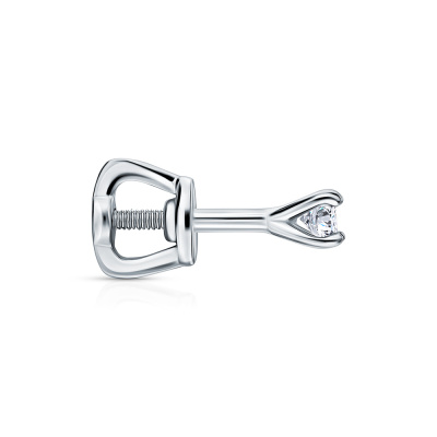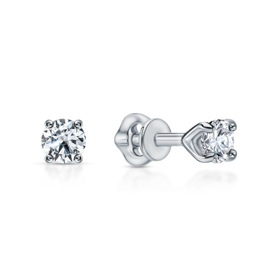 Серьги с 2 бриллиантами выращенными, 0.21 карат, огранка круг 57 граней, цвет 3, чистота 5, тип огранки А; Белое золото 585 пробы.