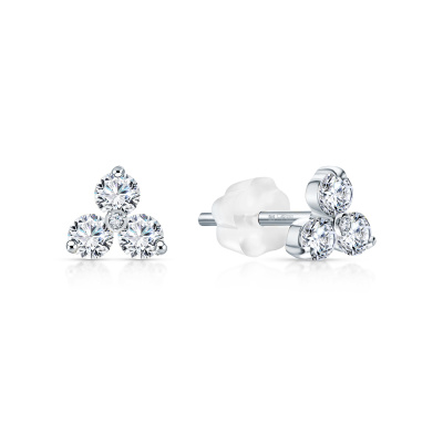 Серьги с 2 бриллиантами природными, 0.008 карат, огранка круг 17 граней, цвет 2, чистота 2, тип огранки А; 6 топазами бесцветными природными, 0.82 карат; силикон; Белое золото 585 пробы.
