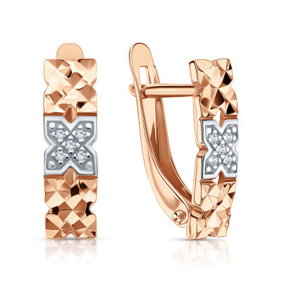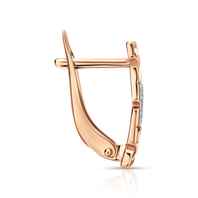 Серьги с 10 бриллиантами природными, 0.02 карат, огранка круг 17 граней, цвет 2, чистота 2, тип огранки А; Розовое золото 585 пробы.