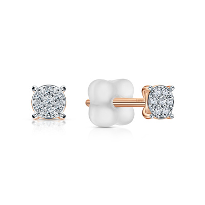 Серьги с 14 бриллиантами природными, 0.05 карат, огранка круг 17 граней, цвет 2, чистота 2, тип огранки А; силикон; Розовое золото 585 пробы.