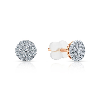 Серьги с 2 бриллиантами природными, 0.03 карат, огранка круг 57 граней, цвет 3, чистота 6, тип огранки А; 14 бриллиантами природными, 0.08 карат, огранка круг 57 граней, цвет 3, чистота 6, тип огранки А; 28 бриллиантами природными, 0.09 карат, огранка круг 17 граней, цвет 2, чистота 2, тип огранки А; силикон; Розовое золото 375 пробы.