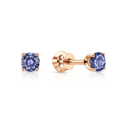 Серьги с 2 танзанитами природными, 0.56 карат; Розовое золото 375 пробы.