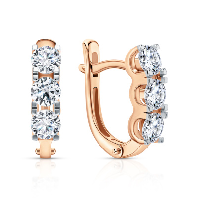 Серьги с 6 бриллиантами выращенными, 1.31 карат, огранка круг 57 граней, цвет 3, чистота 5, тип огранки А; Розовое золото 585 пробы.