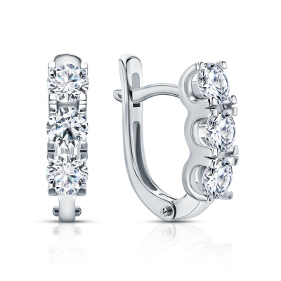 Серьги с 6 бриллиантами выращенными, 1.31 карат, огранка круг 57 граней, цвет 3, чистота 5, тип огранки А; Белое золото 585 пробы.
