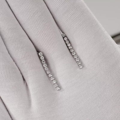 Серьги с 22 бриллиантами выращенными, 0.82 карат, огранка круг 57 граней, цвет 3, чистота 5, тип огранки А; Белое золото 585 пробы.